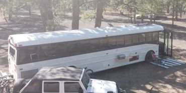 (2) Pioneer 12k mini splits (one front, one back) run off the generator or shore power. (2) 8k diesel heaters for cold nights. The bus has a native heating system for the front driving area.